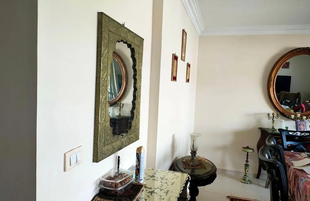 An equipped kitchen at the apartment includes a microwave, an electric kettle, and a refrigerator. You can drive to Cairo International airport, which is a 25-minute drive away.